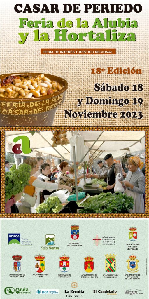 En la pedanía de Casar de Periedo, los días 18 y 19 de noviembre de 2023 tendrá lugar la 18 edición de la Fiesta de la Alubia y la Hortaliza.