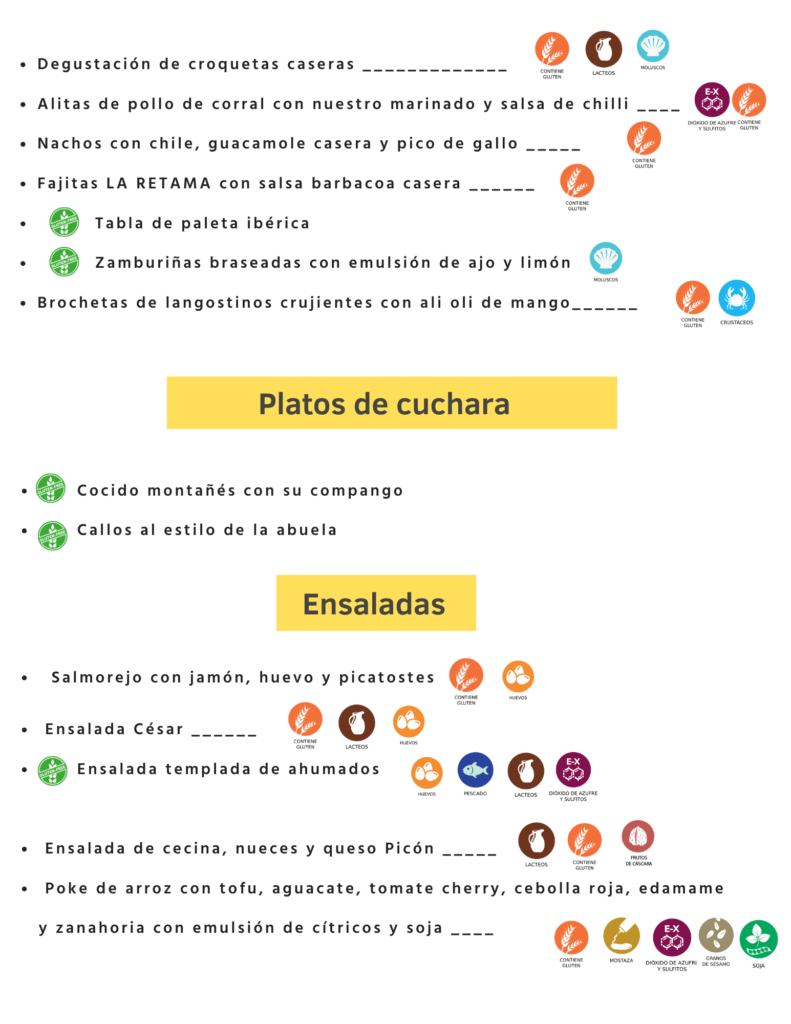 Carta de alérgenos LA RETAMA