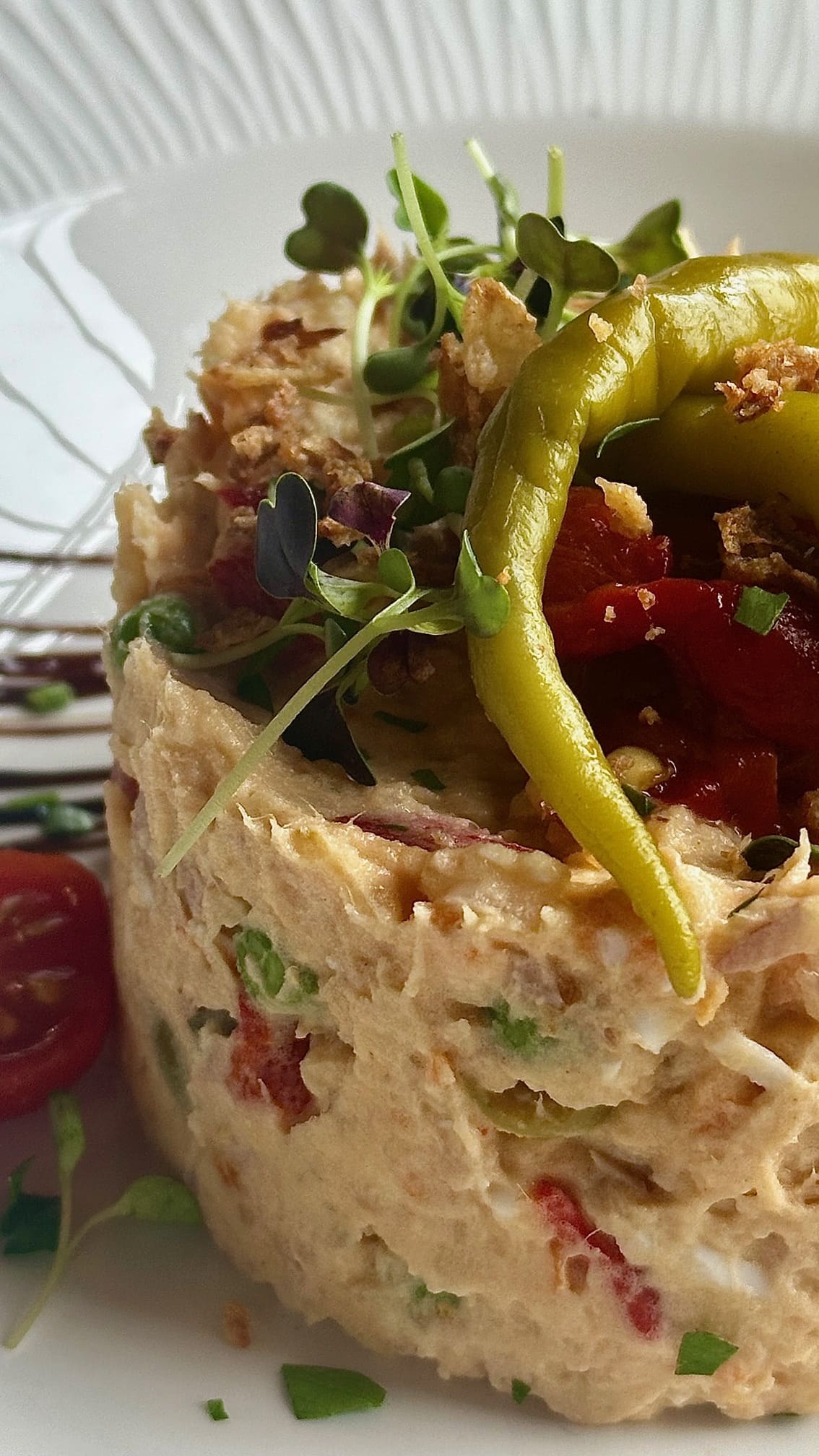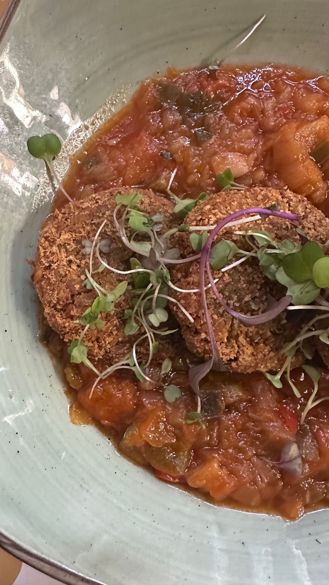 Croquetas caseras de rabo, buñuelos de bacalao, solomillo de pato asado con jugo de Tostadillo de Potes y manzana caramelizada, ragout de venado…